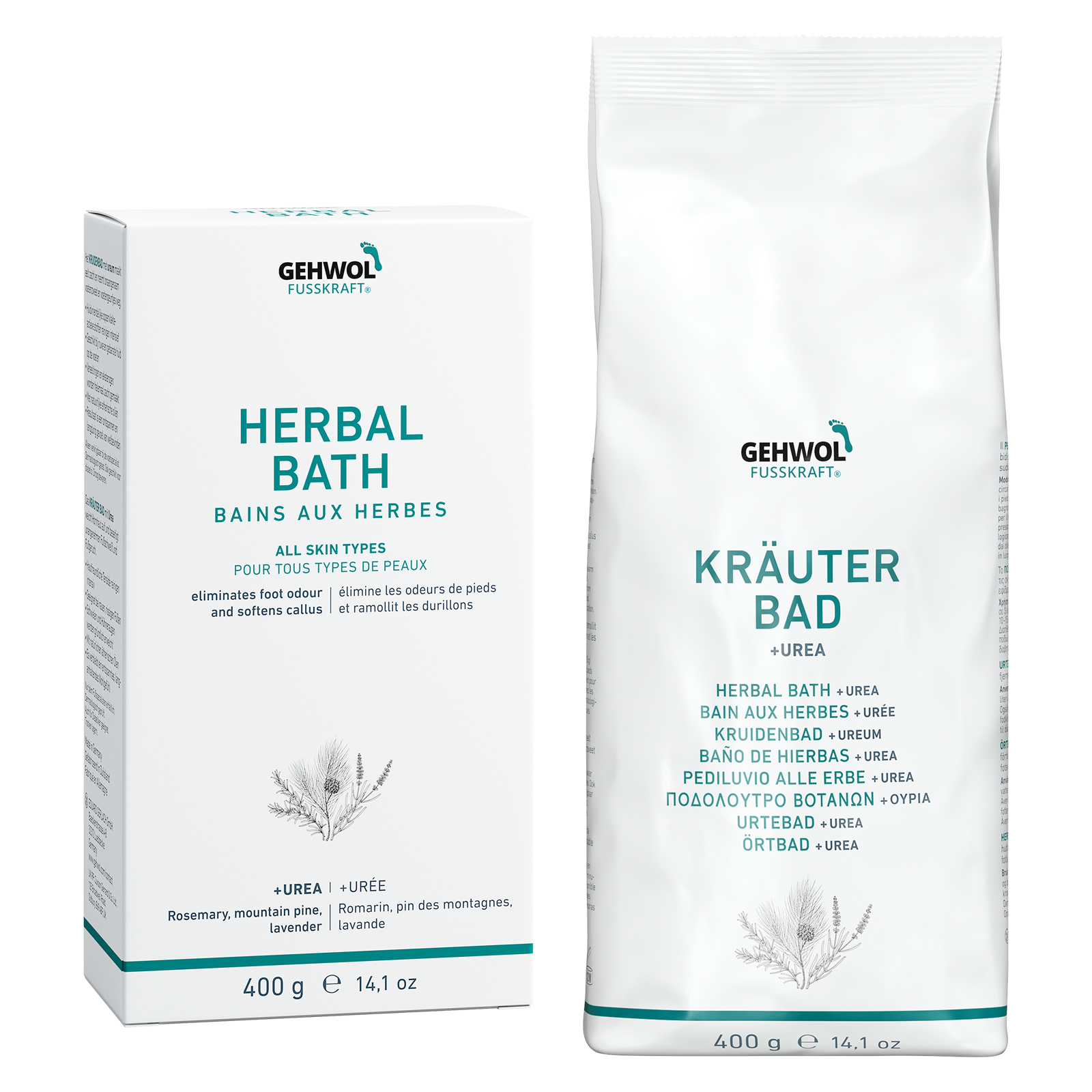 Excessive foot perspiration is normalized and unpleasant foot odor is eliminated and a long-lasting feeling of freshness is ensured. Regular use of GEHWOL FUSSKRAFT Herbal Bath will give you healthy supple feet. Extra relief can be obtained after the foot bath by massaging the feet with a GEHWOL FUSSKRAFT cream suitable for your skin type.