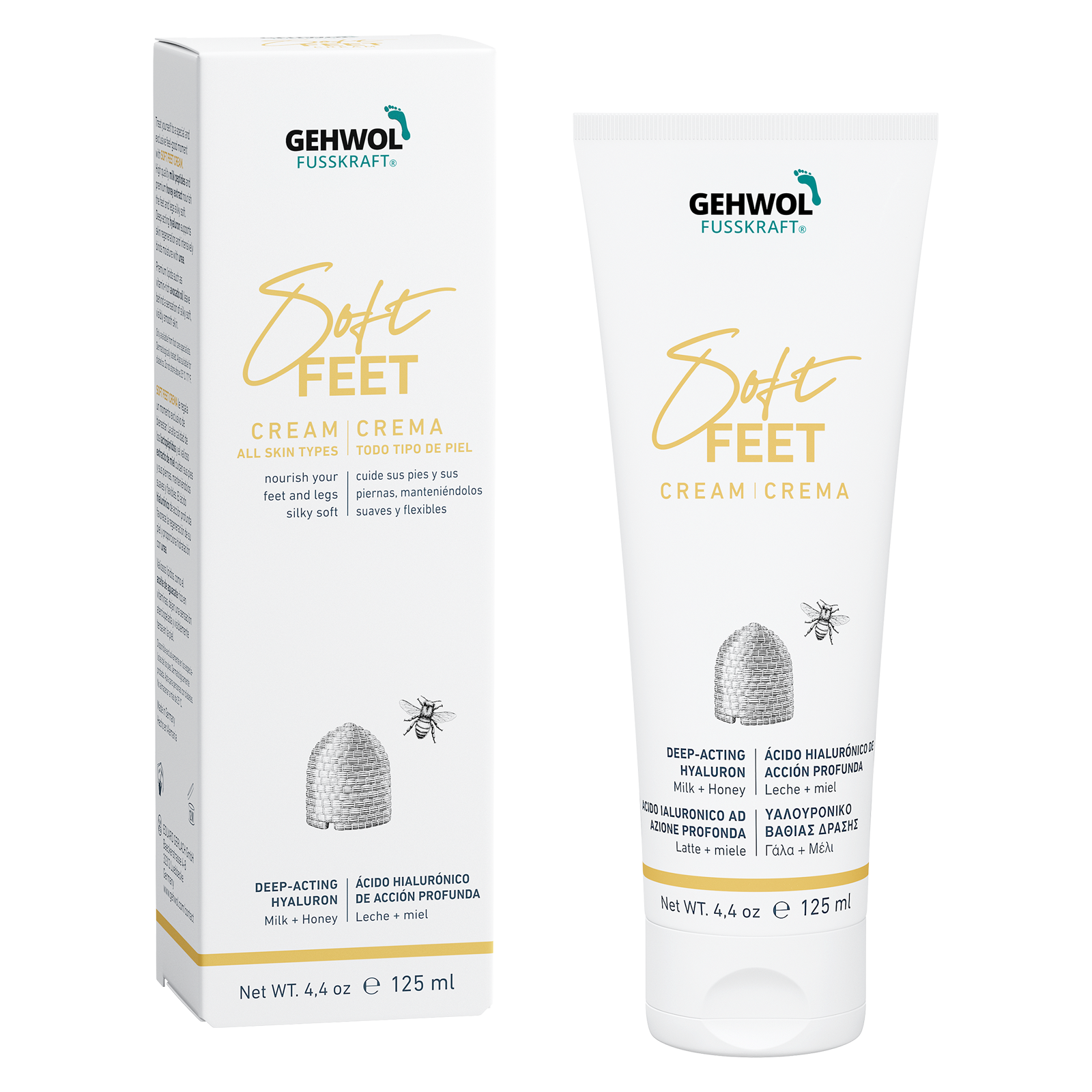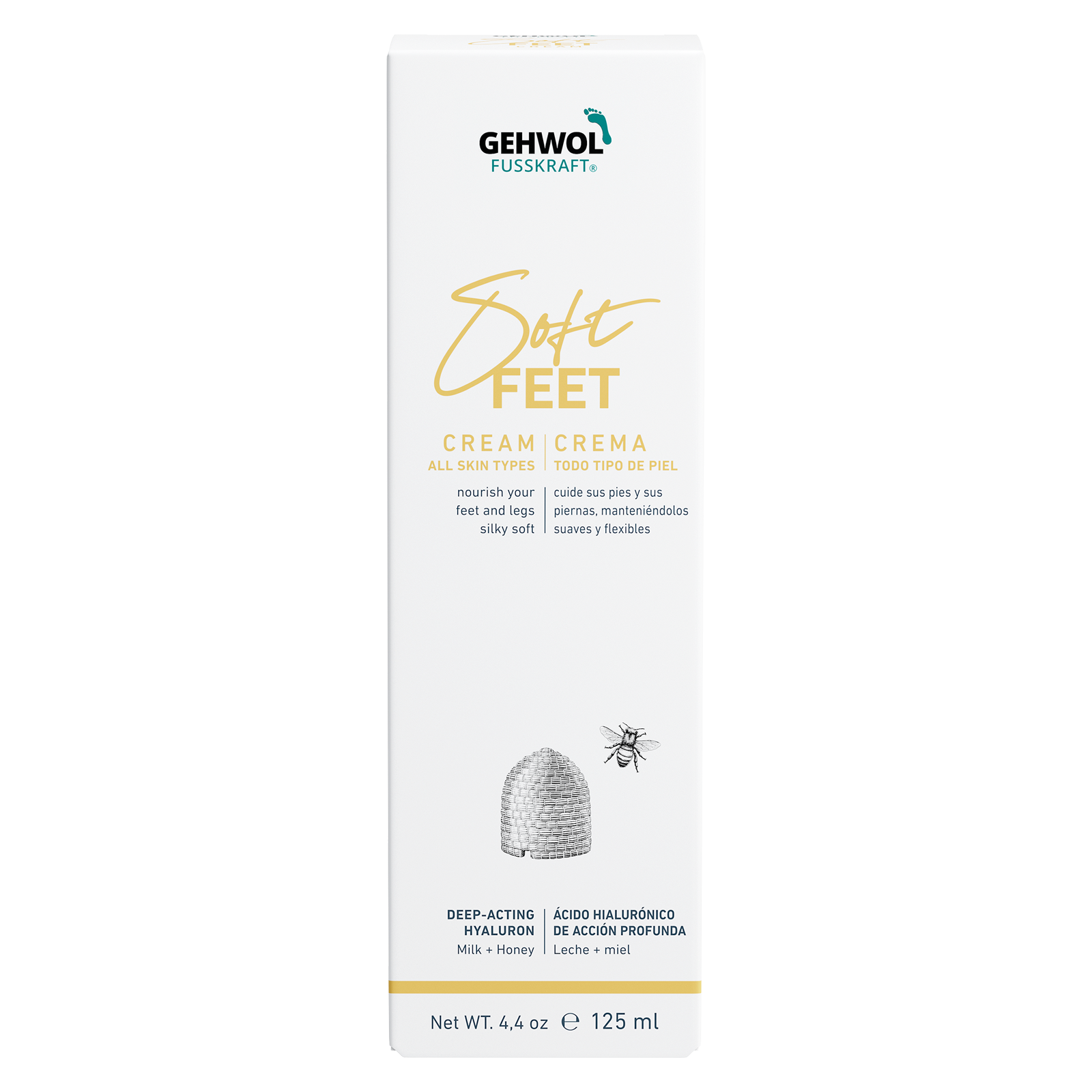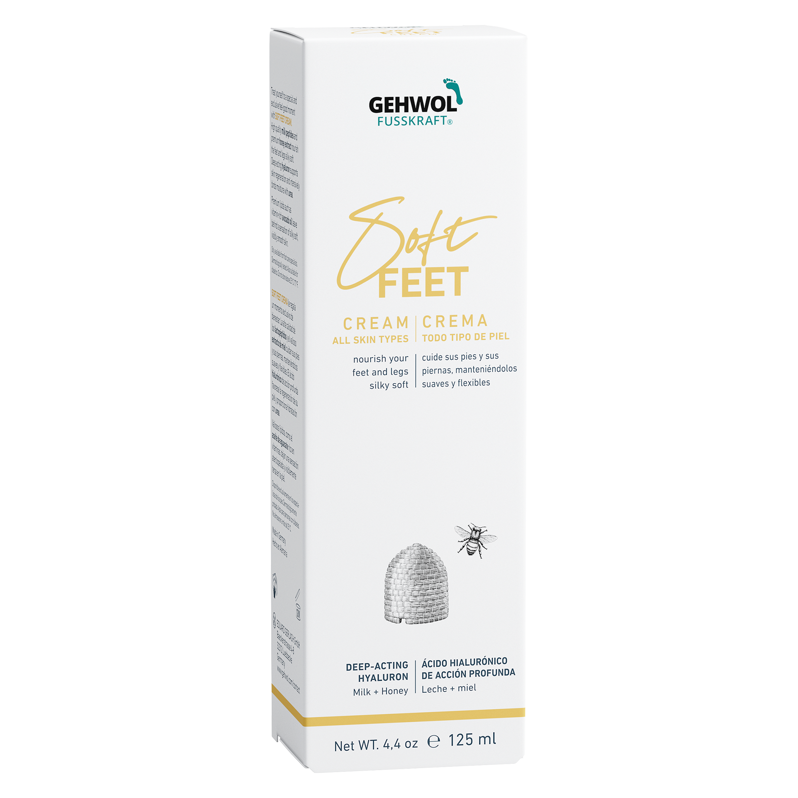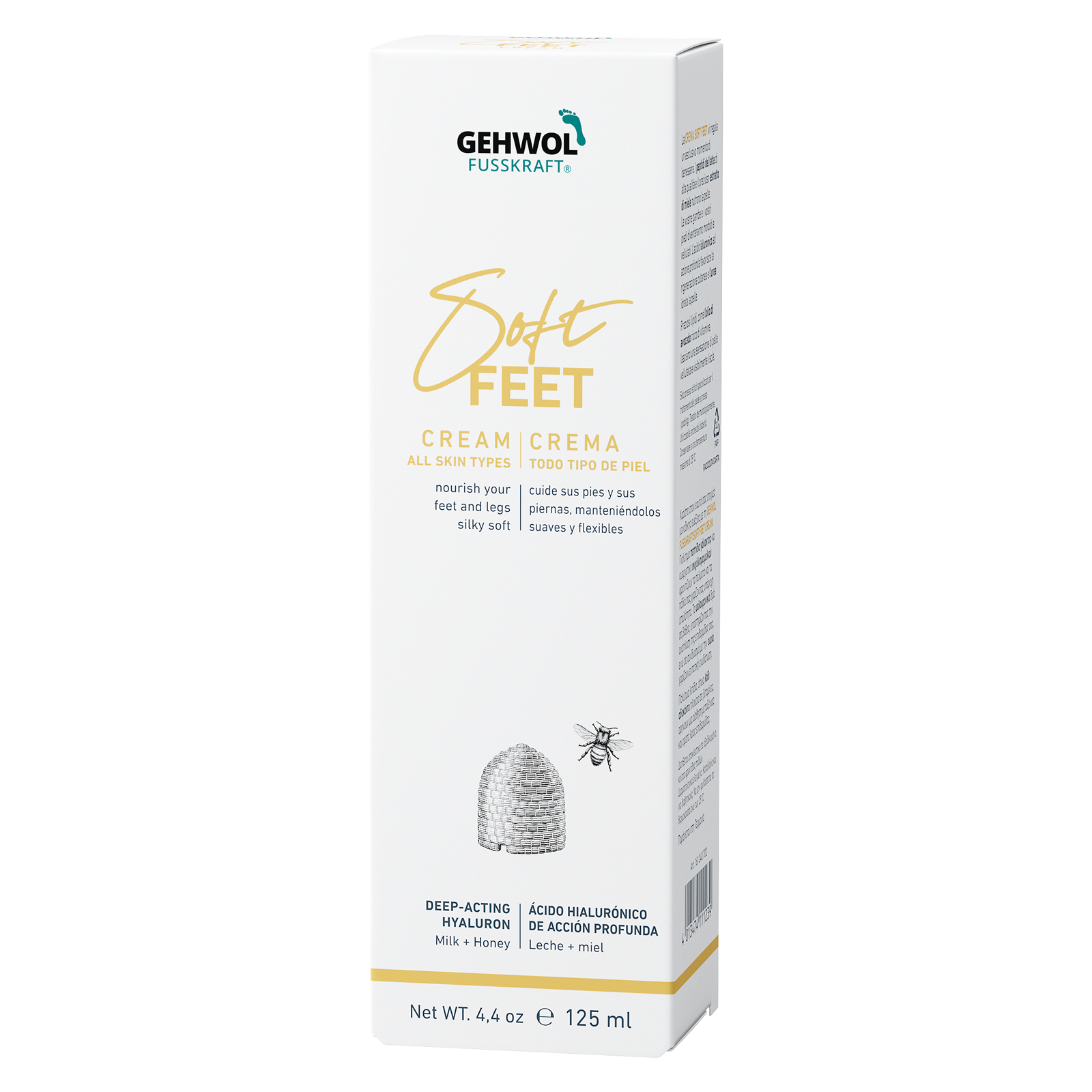 Milk peptides and honey extract make the skin noticeably silkier and visibly smoother. GEHWOL FUSSKRAFT Soft Feet Cream is a moisturizing foot and leg cream which is easily absorbed and leaves behind the feeling of silky soft skin. The pleasant, refreshing scent gives you the security of well cared feet.